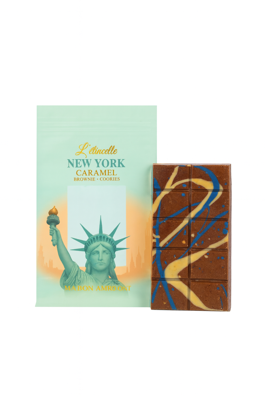 Une création audacieuse qui capture l’âme vibrante de New York.Cette tablette de chocolat au lait artisanal révèle un cœur fondant au caramel, parsemé de mini-cookies croustillants et de morceaux de brownies moelleux.Un jeu de textures intenses et de saveurs réconfortantes, pour une pause chocolatée unique, inspirée de l’univers urbain et gourmand new-yorkais.